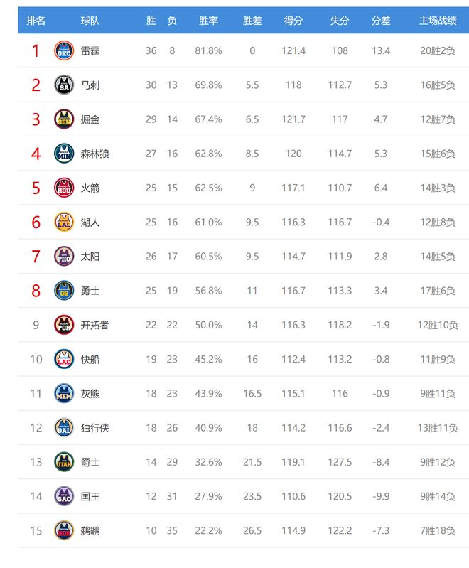 今日比赛后快船、灰熊排名互换,其他西部球队排名不变。