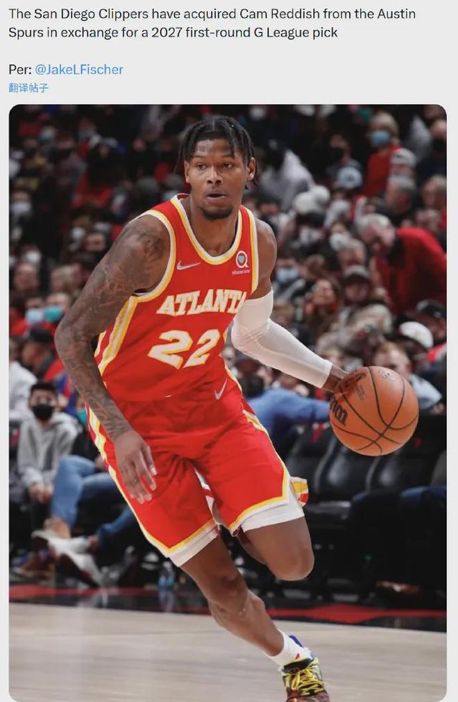 马刺下属球队奥斯汀马刺认领此前加入发展联盟球员池的雷迪什,随后将他交易至快船下属球队圣迭戈快船,换回2027年G联盟首轮选秀权。