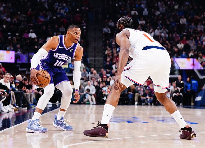 国王主场迎战骑士,哈登迎来骑士生涯首秀,国王少了小萨、拉文、穆雷、亨特、蒙克,骑士少了莫布利、斯特鲁斯、韦德,国王长时间占据上风,一度领先11分,第四节时一度领先7分,随后哈登、米切尔联手反超了比分,最终骑士132-126击败国王。米切尔24中13得到35分2板4助2断2帽、哈登13中7(三分8中5)得到23分2板8助、阿伦12中11得到29分10板1助。国王方面威少14中8(三分10中5)得到21分5板9助、克利福德19中12(三分9中5)得到30分4板4助2断2帽。