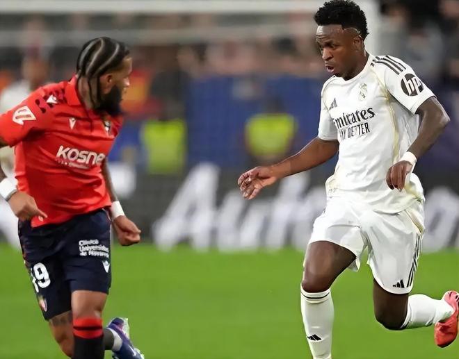 皇马在西甲豪取了8连胜,加上巴萨1-2输给了赫罗纳,皇马以2分的优势重夺领头羊位置,而且上一场在欧冠客场1-0力克本菲卡。但是客场挑战奥萨苏纳,皇马踢得非常吃力,上半场犯规送点,下半场虽然维尼修斯的进球抹平了比分,但随着劳尔-加西亚在第90分钟的进球绝杀,皇马1-2爆冷输球,如果巴萨本轮赢球拿到三分,就能重新回到榜首的位置。