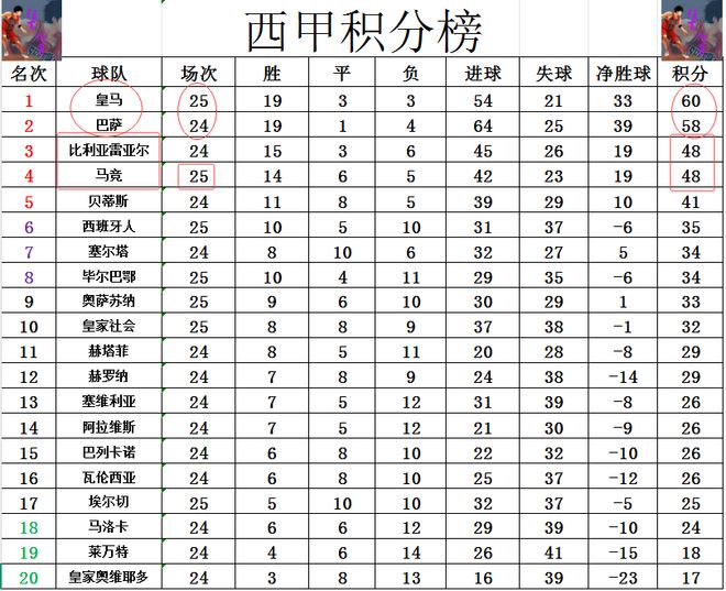 北京时间2月22日凌晨,2025-26赛季西甲联赛第25轮再赛4场。经过一番鏖战,皇家社会主场3:3平皇家奥维耶多,巴列卡诺客场1:1战平皇家贝蒂斯,奥萨苏纳主场2:1绝杀皇马,西班牙人客场2:4不敌马竞。