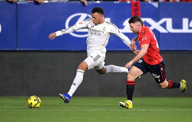 奥萨苏纳近5轮保持不败,排名跃升到积分榜中游。阿韦罗亚延续周中4-4-2的体系:库尔图瓦站在球门前,卡雷拉斯、阿拉巴、劳尔-阿森西奥、卡瓦哈尔组成防线搭档;卡马文加、楚阿梅尼、巴尔韦德、居莱尔形成中场四人组,维尼修斯与姆巴佩双前锋出击。